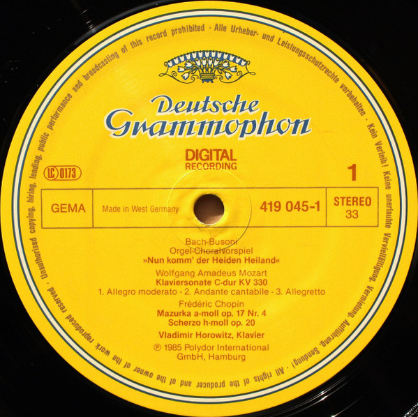 Vladimir Horowitz – Bach/Busoni · Chopin · Liszt · Moszkowski · Mozart · Rachmaninov · Schubert · Schumann · Scriabin (LP, Album, Gat)