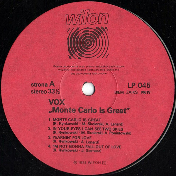 VOX (7) – Monte Carlo Is Great (LP, Album)