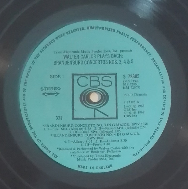 Walter Carlos, Bach* – Brandenburg Concertos Nos. 3, 4 & 5 (LP, Album, Comp)