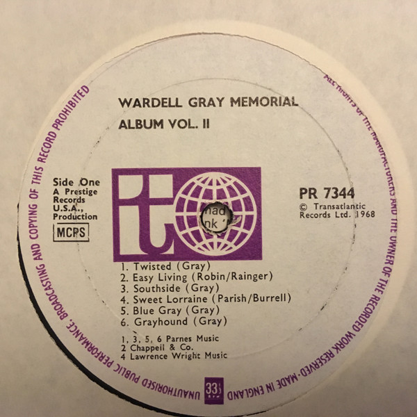 Wardell Gray – Memorial Album Volume Two (LP, Comp, RE)