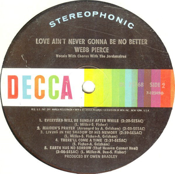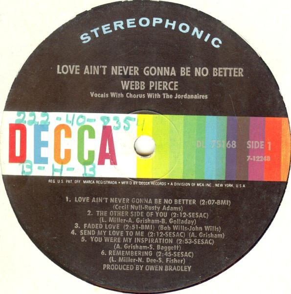 Webb Pierce – Love Ain’t Never Gonna Be No Better (LP, Album, Pin)