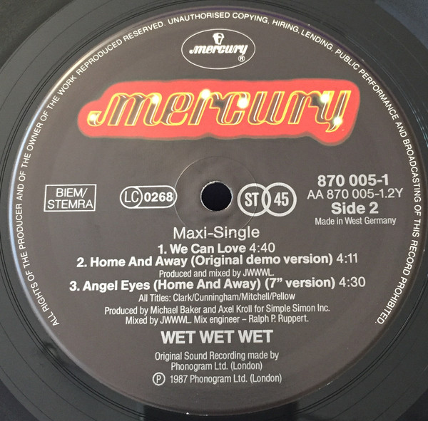 Wet Wet Wet – Angel Eyes (Home And Away) (12″, Maxi)
