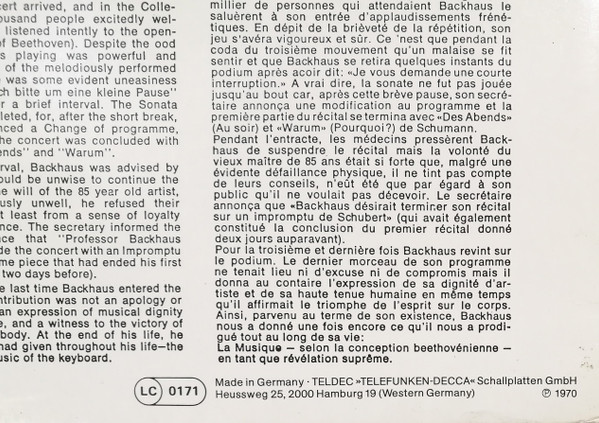 Wilhelm Backhaus – Abschied Von Einem Großen Pianisten (Sein Letztes Konzert) (LP, Album, Comp, RE, Gat)