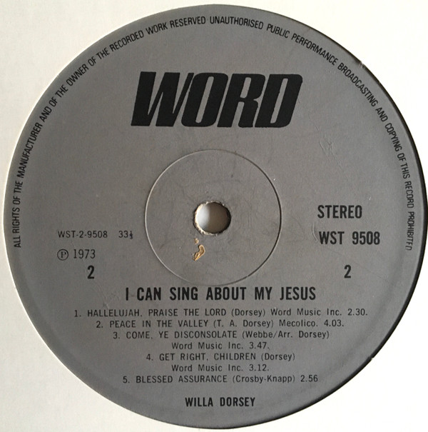 Willa Dorsey – I Can Sing About My Jesus (LP, Album)