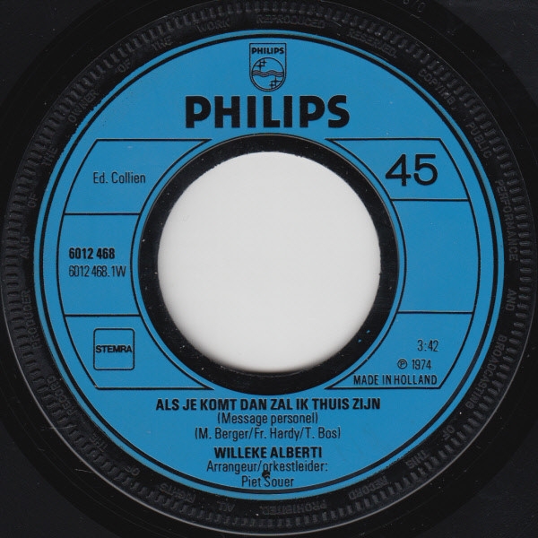 Willeke Alberti – Als Je Komt Dan Zal Ik Thuis Zijn (7″, Single)