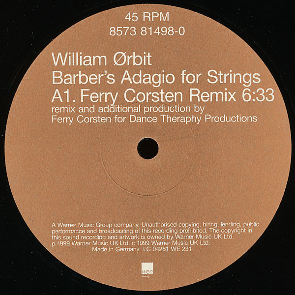 William Ørbit* – Barber’s Adagio For Strings (12″)