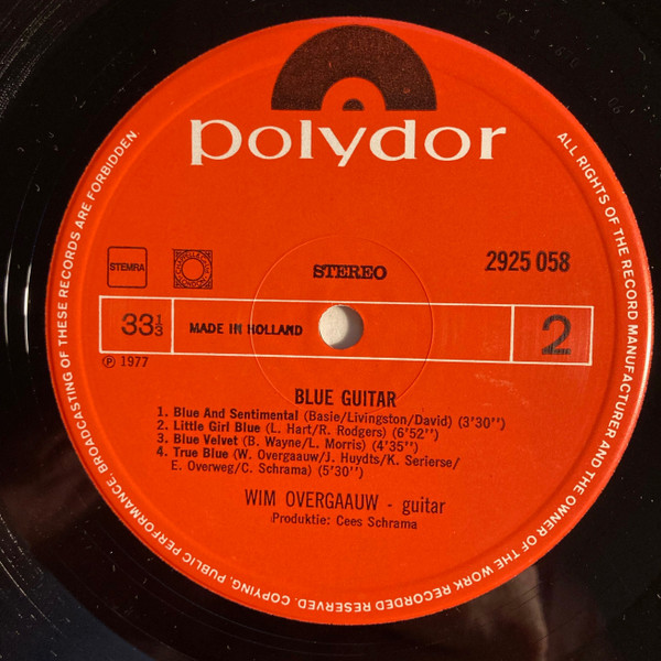 Wim Overgaauw – Blue Guitar (LP, Album)