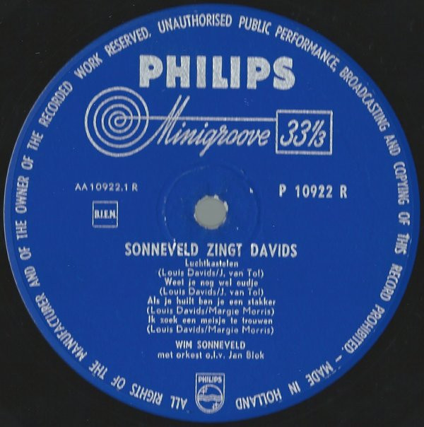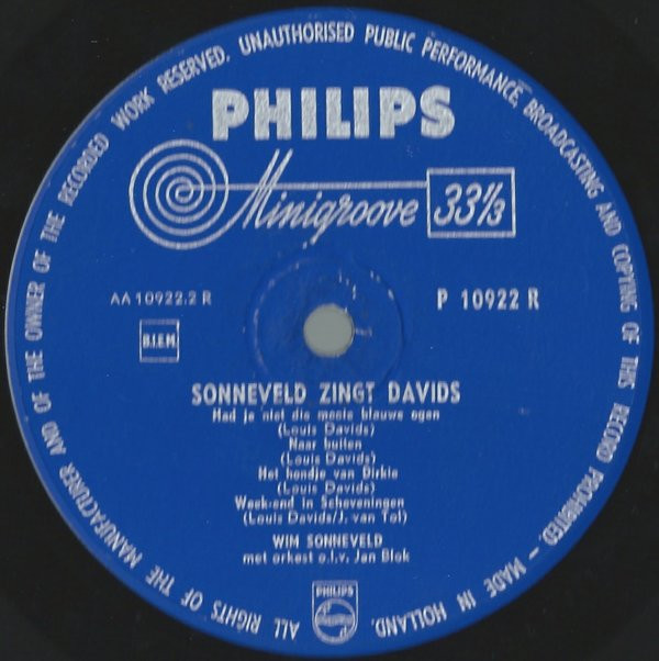 Wim Sonneveld – Sonneveld Zingt Davids (10″, Album)