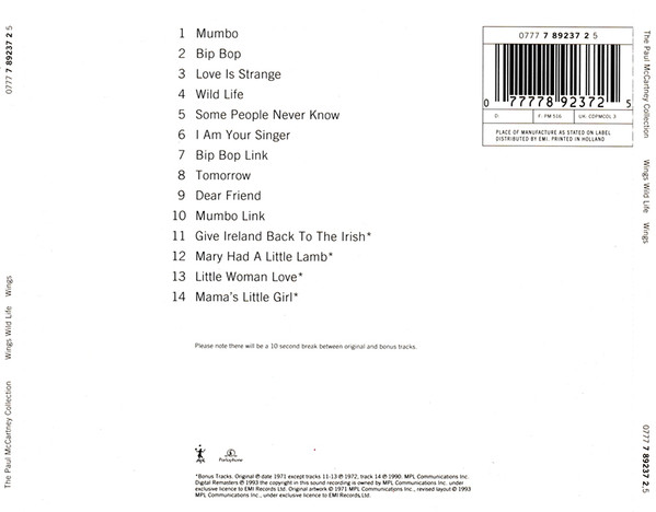 Wings (2) – Wild Life (CD, Album, RE, RM)