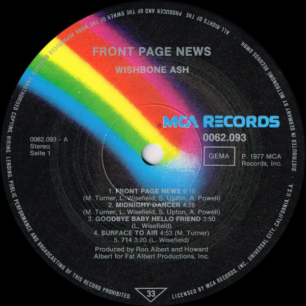 Wishbone Ash – Front Page News (LP, Album, Gat)