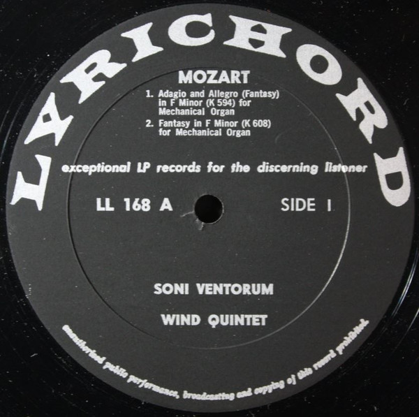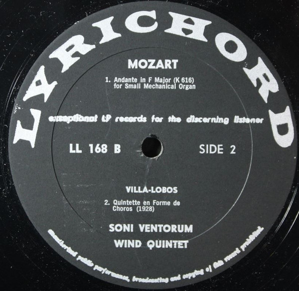 Wolfgang Amadeus Mozart, Heitor Villa-Lobos – Soni Ventorum Wind Quintet – Adagio And Allegro In F Minor. K.594 / Fantasy In F Minor, K.608 / Andante In F Major, K.616 / Quintette En Forme De Choros (1928) (LP, Album, Mono)