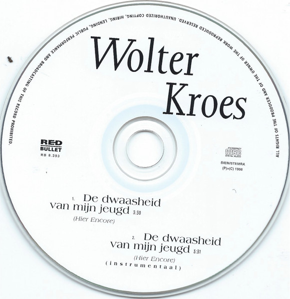 Wolter Kroes – De Dwaasheid Van Mijn Jeugd (CD, Single)