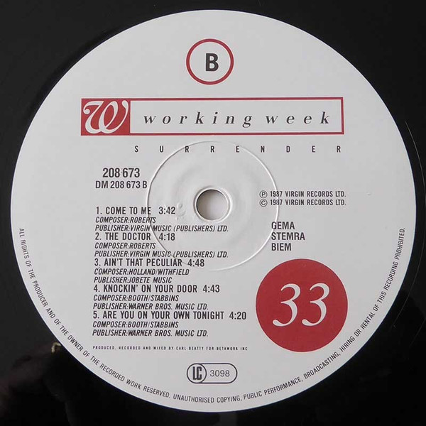 Working Week – Surrender (LP, Album)