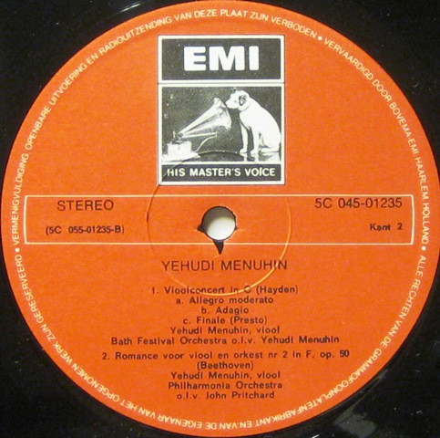 Yehudi Menuhin – Bach: Vioolconcert In A ⬝ Beethoven: Vioolromance Nr. 2 ⬝ Vivaldi: Concerto Grosso In B ⬝ Haydn: Vioolconcert In C (LP, Comp)