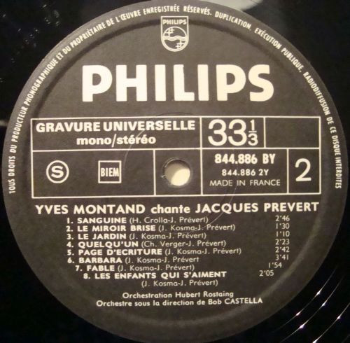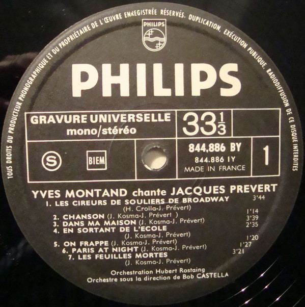 Yves Montand – Montand Chante Prévert (LP, Album)