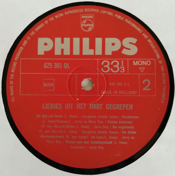 Zangeres Zonder Naam – Jerry En Mary Bey – Liedjes Uit Het Hart Gegrepen (LP, Comp, Mono, Red)