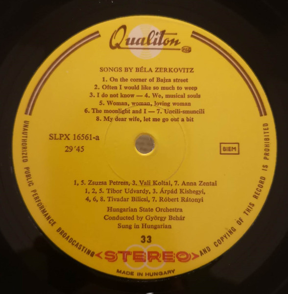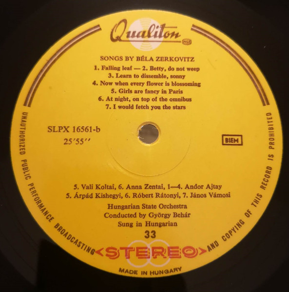 Zerkovitz Béla – Zerkovitz Béla Dalai = Songs By Béla Zerkovitz (LP, Eng)