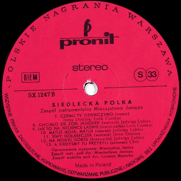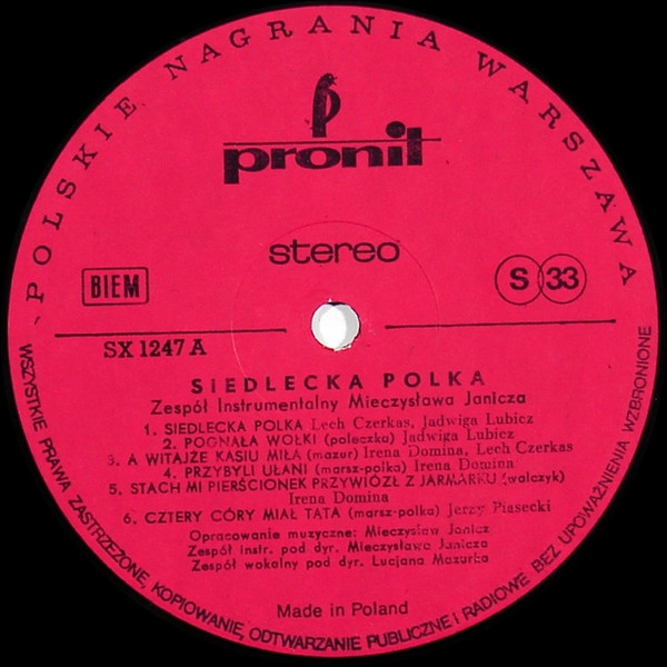 Zespół Instrumentalny Mieczysława Janicza – Siedlecka Polka (LP, Album, Red)