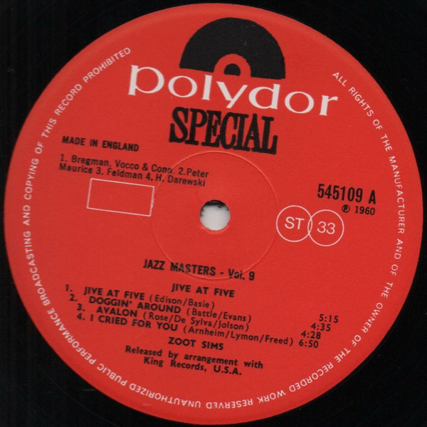 Zoot Sims & Friends – Jive At Five (LP, Album, RE)