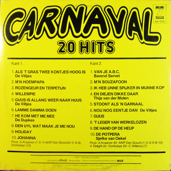 € 4.00 Media: Good Plus (G+)Hoes: Very Good Plus (VG+)Various – Carnaval: 20 Hits Bekend Van Radio En Televisie (LP, Comp)