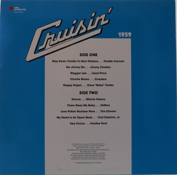 € 37.00 Media: Mint (M)Hoes: Very Good Plus (VG+)Various – Cruisin’ 1959 (LP, Comp)