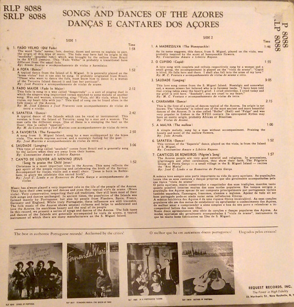 € 4.50 Media: Very Good (VG)Hoes: Poor (P)Various – Danças E Cantares Dos Açores (Songs And Dances Of The Azores) (LP, Comp)