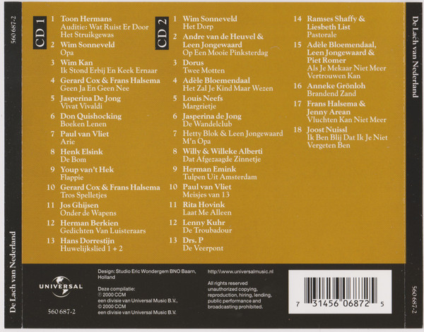 € 5.50 Media: Very Good Plus (VG+)Hoes: Good Plus (G+)Various – De Lach Van Nederland (2xCD, Comp)