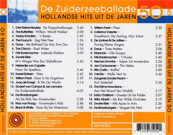 Various – De Zuiderzeeballade – Hollandse Hits Uit De Jaren 50 (2xCD, Comp)