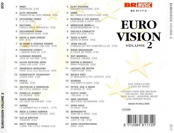 € 22.00 Media: Near Mint (NM or M-)Hoes: Very Good Plus (VG+)Various – Eurovision – Volume 2 (2xCD, Comp)