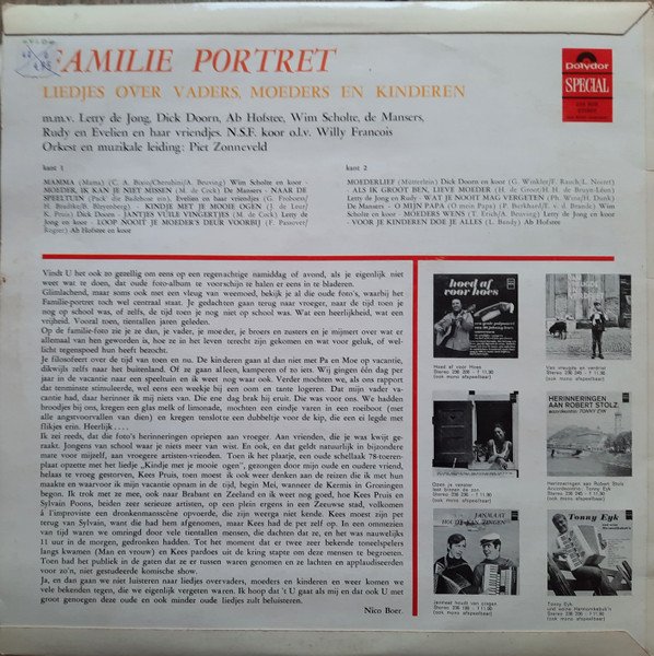 € 7.00 Media: Very Good Plus (VG+)Hoes: Very Good Plus (VG+)Various – Familie Portret – Liedjes Over Vaders, Moeders En Kinderen (LP, Album)