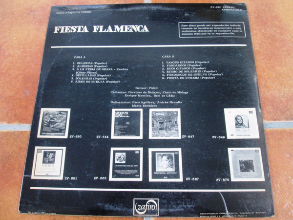 € 5.00 Media: Very Good Plus (VG+)Hoes: Very Good Plus (VG+)Various – Fiesta Flamenca (LP, Comp)