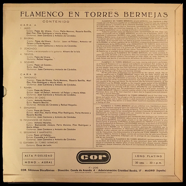 € 7.50 Media: Very Good Plus (VG+)Hoes: Very Good Plus (VG+)Various – Flamenco En Torres Bermejas (LP, Album, Mono)