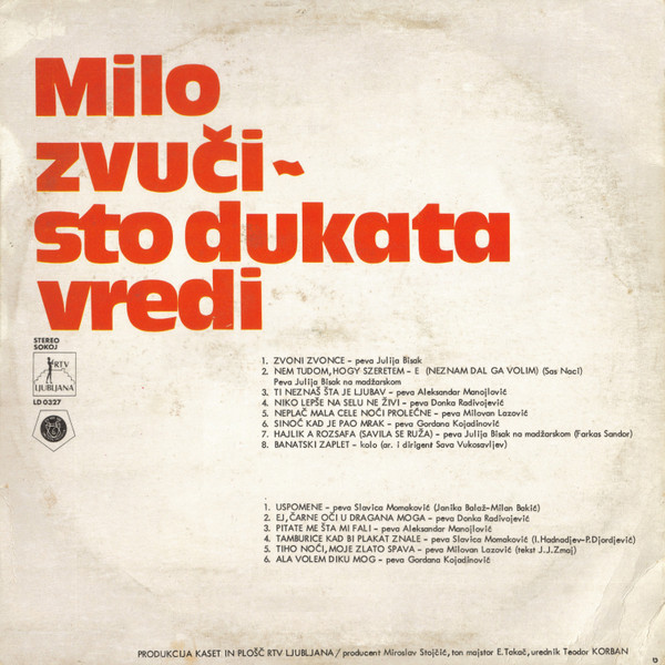 € 8.50 Media: Very Good Plus (VG+)Hoes: Very Good Plus (VG+)Various – Milo Zvuči – Sto Dukata Vredi (LP, Comp)