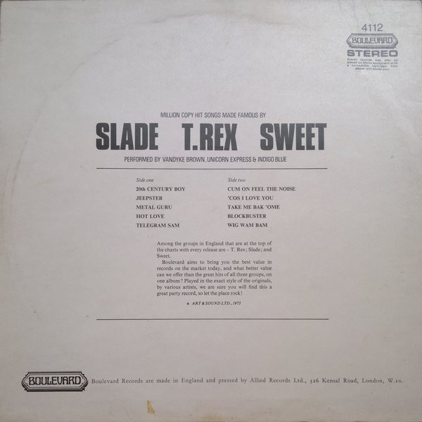 € 3.00 Media: Good Plus (G+)Hoes: Very Good (VG)Various – Million Copy Hit Songs Made Famous By T. Rex, Slade And Sweet (LP, Comp)