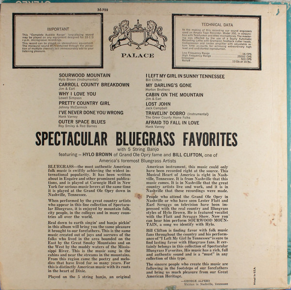€ 7.00 Media: Very Good Plus (VG+)Various – Spectacular Bluegrass Favorites (LP, Mono)