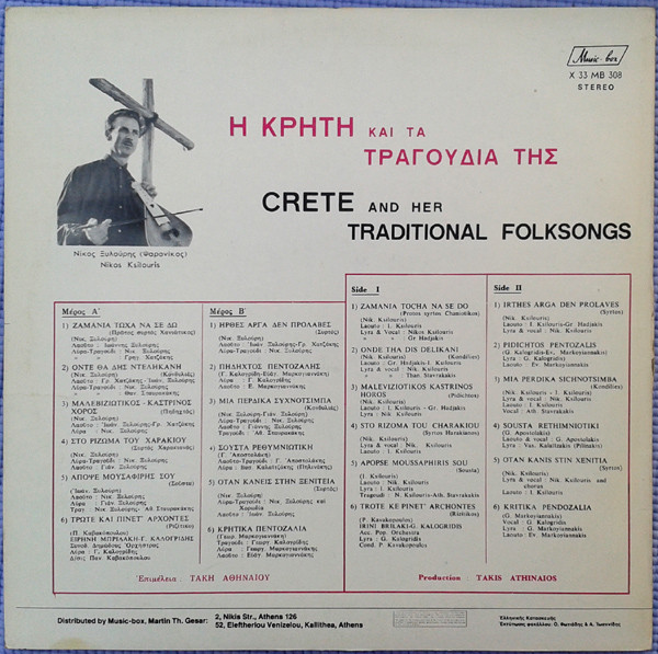 € 12.00 Media: Near Mint (NM or M-)Hoes: Very Good Plus (VG+)Νίκος Ξυλούρης – Η Κρήτη Και Τα Τραγούδια Της / Crete And Her Traditional Folksongs (LP, Album, RE)