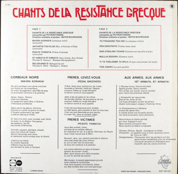 € 14.50 Media: Very Good (VG)Hoes: Very Good (VG)Πέτρος Πανδής – Chants De La Résistance Grecque (LP)
