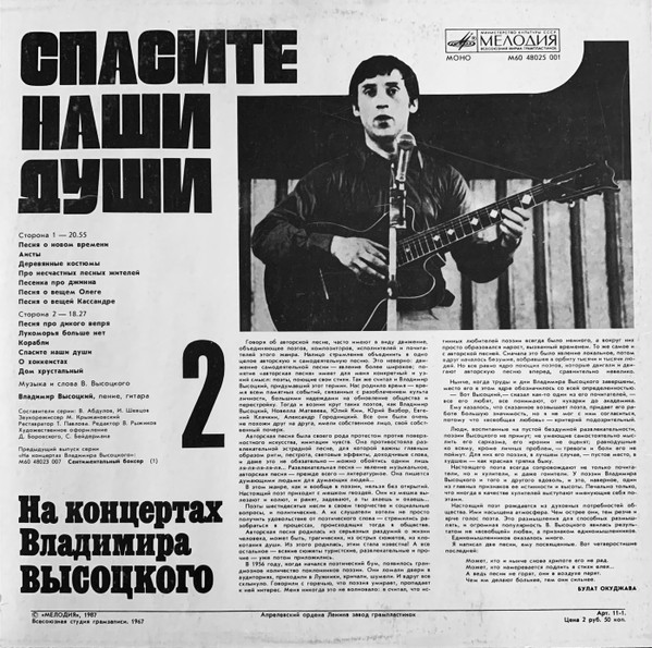 € 5.00 Media: Very Good Plus (VG+)Hoes: Very Good Plus (VG+)Владимир Высоцкий – Спасите Наши Души (LP, Mono, Whi)