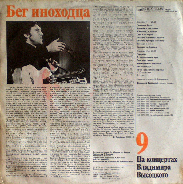 € 8.50 Media: Very Good Plus (VG+)Hoes: Very Good Plus (VG+)Владимир Высоцкий – Бег Иноходца (LP, Mono, RP, Whi)