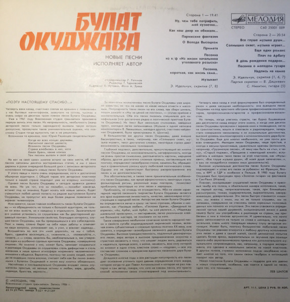 € 14.50 Media: Very Good (VG)Hoes: Very Good Plus (VG+)Булат Окуджава – Новые Песни (LP, Album, ЛЗГ)