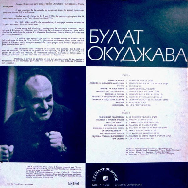 € 3.50 Media: Good (G)Hoes: Very Good Plus (VG+)Булат Окуджава – Le Soldat En Papier (LP)