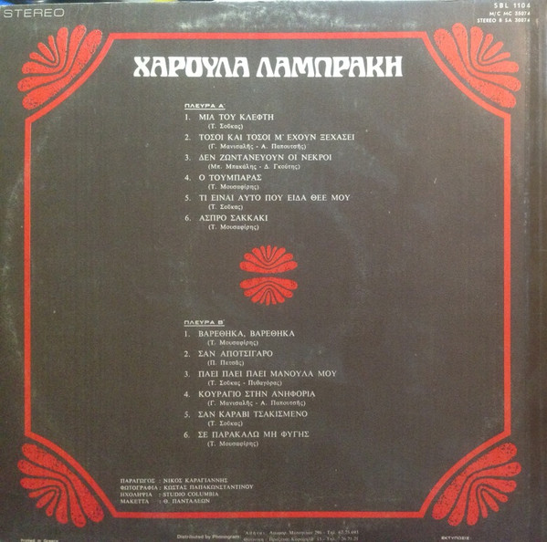 € 7.50 Media: Near Mint (NM or M-)Hoes: Very Good Plus (VG+)Χαρούλα Λαμπράκη – Χαρούλα Λαμπράκη (LP, Album)