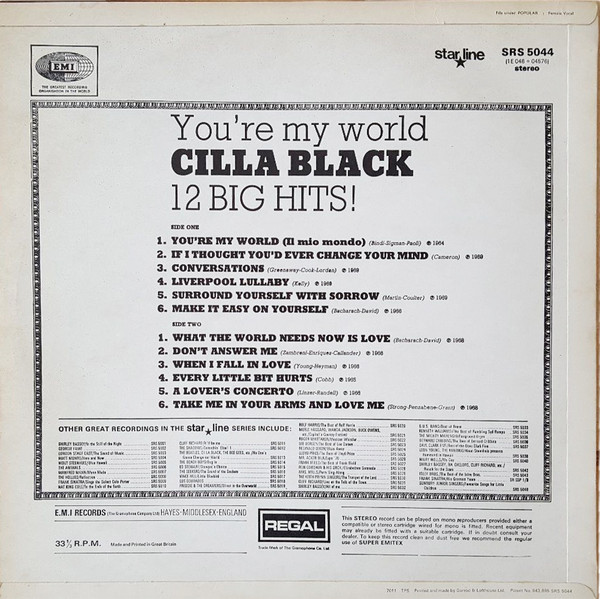 € 5.00 Media: Very Good (VG)Hoes: Very Good (VG)Cilla Black – You’re My World (LP, Comp)