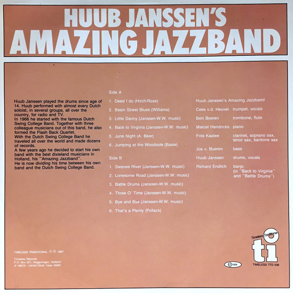 € 2.50 Media: Fair (F)Hoes: Good (G)Huub Janssen’s Amazing Jazzband – Huub Janssen’s Amazing Jazzband (LP, Album)