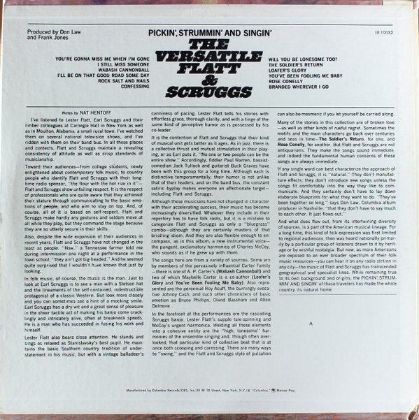 € 6.50 Media: Good Plus (G+)Hoes: Very Good Plus (VG+)Flatt & Scruggs – The Versatile Flatt & Scruggs: Pickin’, Strummin’ And Singin’ (LP, Album, RE)
