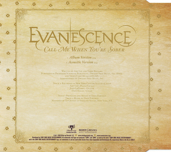 € 3.50 Media: Good (G)Hoes: Very Good Plus (VG+)Evanescence – Call Me When You’re Sober (CD, Single)