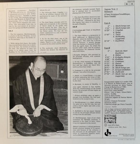 € 10.00 Media: Very Good Plus (VG+)Hoes: Very Good Plus (VG+)Tendai (4) – Japon 2: Shômyô – Chant Liturgique Bouddhique (LP, Album, RE)