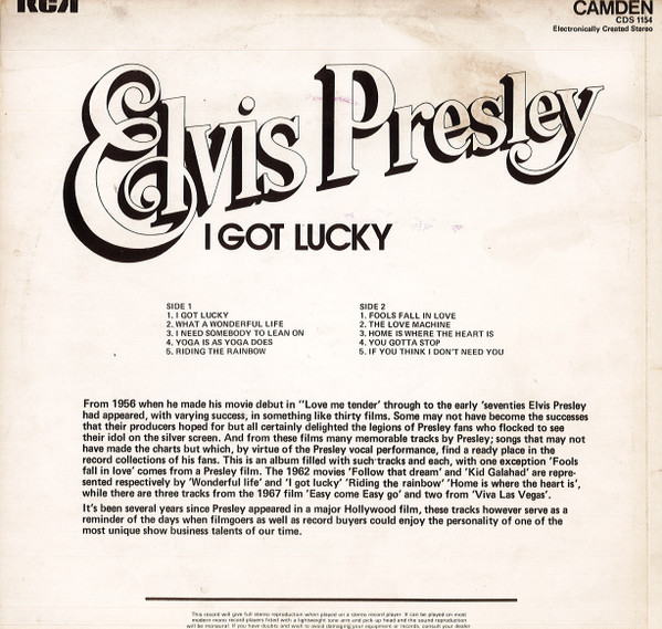 € 10.50 Media: Very Good (VG)Hoes: Very Good Plus (VG+)Elvis Presley – I Got Lucky (LP, Comp, Tur)