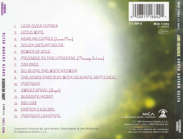 € 17.00 Media: Very Good Plus (VG+)Hoes: Very Good Plus (VG+)Jimi Hendrix – South Saturn Delta (CD, Comp, RM, RP)