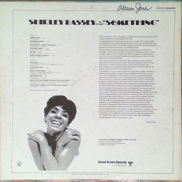 € 3.50 Media: Good (G)Hoes: Very Good (VG)Shirley Bassey – Is Really “Something” (LP, Album, RE)